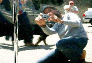 Der Autor von Bild und Text spiegelt sich im Lack einer "Gangsterlimousine" | |