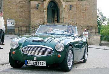Nein, dieser wunderschöne Austin Healey kommt nicht aus der Kirche! |