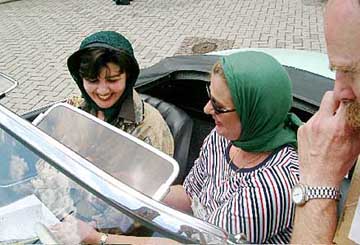 Auch diese beiden Damen fahren in klassischer Manier einen SL mit viel Spaß auch ohne Flügeltüren. | |