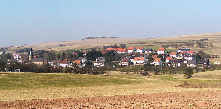 Blick auf den Ostteil von Schallodenbach. Im Hintergrund der Segelfliegerberg "Elkenknopf"
