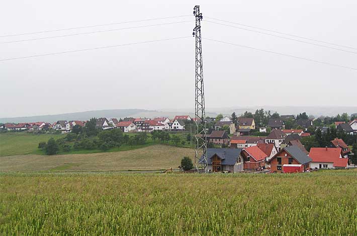 Blick auf die Römerstraße im Hintergrund und vorne rechts das Neubaugebiet am Plattenweg