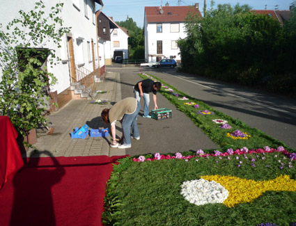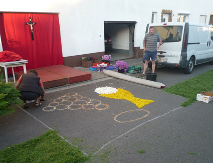 Hier entsteht ein Altar mit Blütenteppich