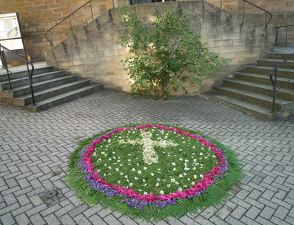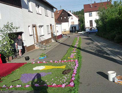 Blumenteppich vor der Kirche.