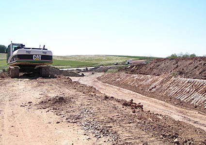 | Blick auf den Baustellenabschnitt "Sauwiese" | Der Bach in der "Sauwiese" wird durch ein Rohr geführt. |